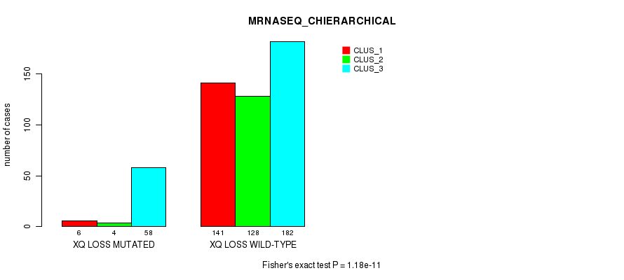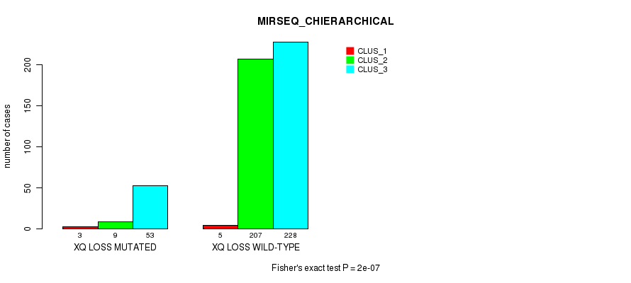 Figure S412. Get High-res Image Gene #80: 'xq loss' versus Molecular Subtype #10: 'MIRSEQ_CHIERARCHICAL'