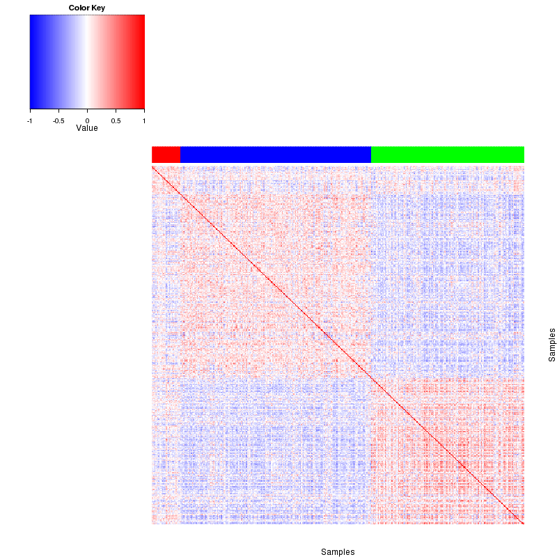 Figure 4. The consensus matrix after clustering shows 3 robust clusters with limited overlap between clusters.