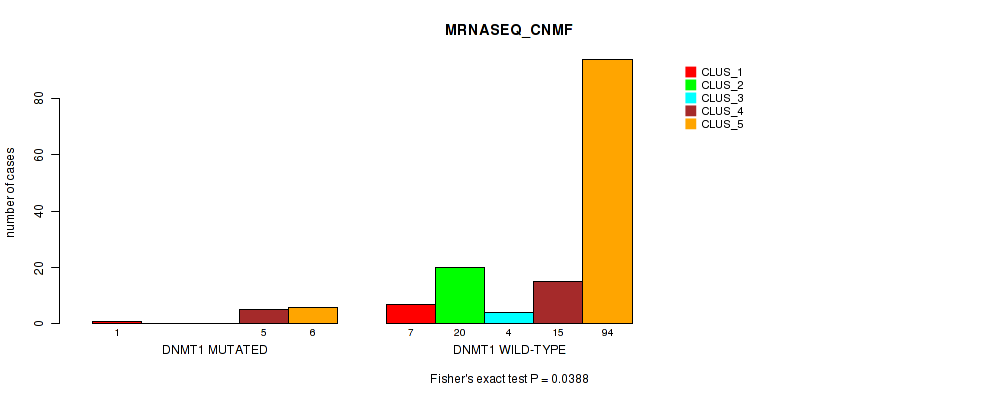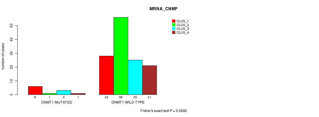 Table S225. Gene #27: 'KLK2 MUTATION STATUS' versus Molecular Subtype #1: 'MRNA_CNMF'