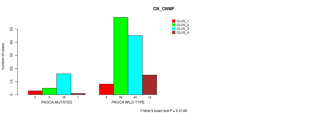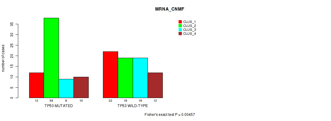 TP53 mutation correlated to 'CN_CNMF' and 'MRNASEQ_CNMF'.