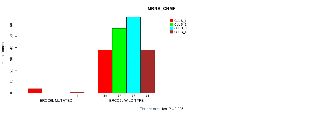 Table S393. Gene #46: 'ESR1 MUTATION STATUS' versus Molecular Subtype #1: 'MRNA_CNMF'