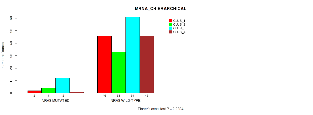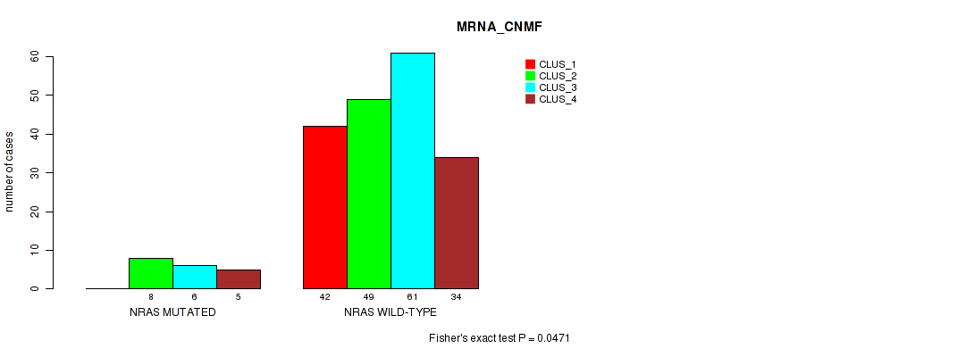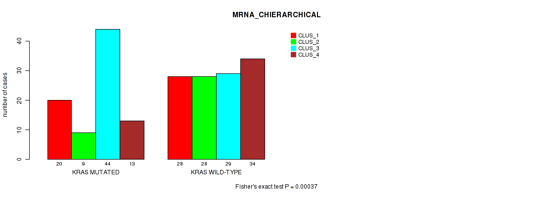 KRAS mutation correlated to 'MRNA_CNMF', 'MRNA_CHIERARCHICAL', and 'MRNASEQ_CNMF'.