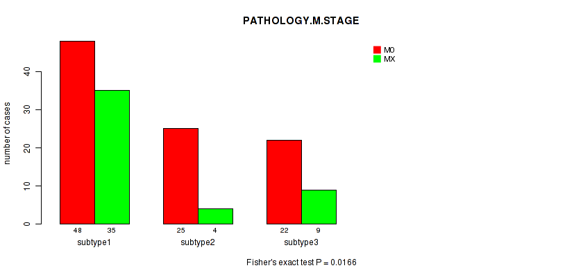 | PATHOLOGY M STAGE | Fisher's exact test |