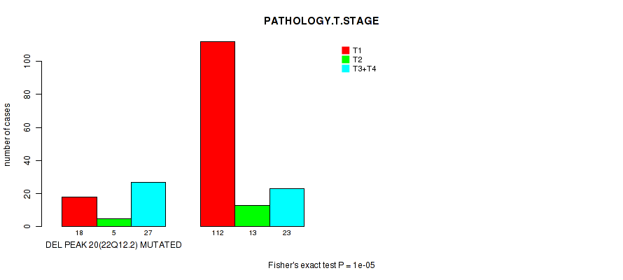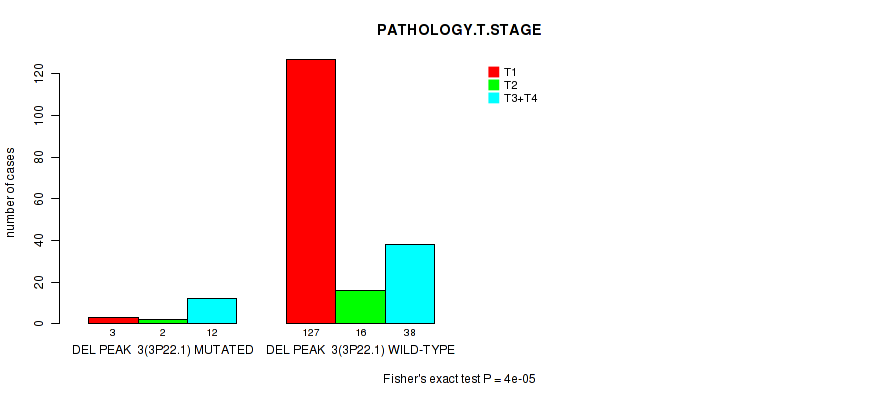 Figure S36. Get High-res Image Gene #28: 'del_xp11.22' versus Clinical Feature #4: 'PATHOLOGY.T.STAGE'