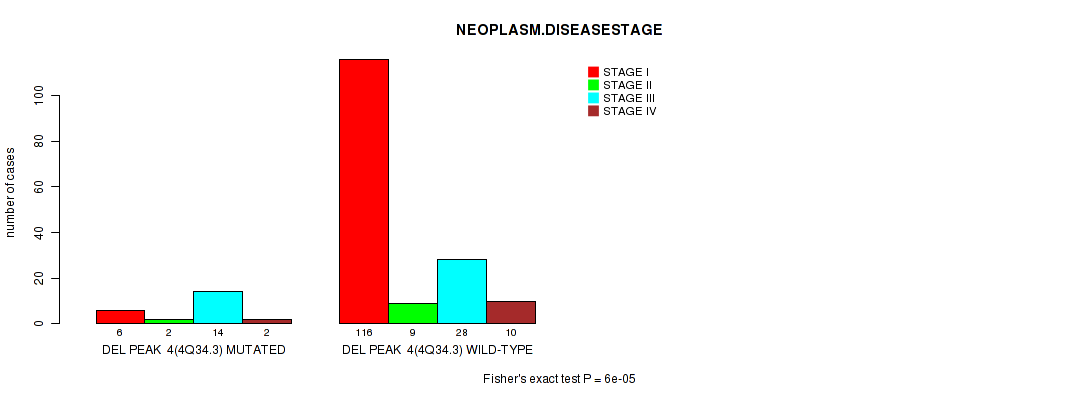 del_4q34.3 cnv correlated to 'NEOPLASM.DISEASESTAGE' and 'PATHOLOGY.T.STAGE'.