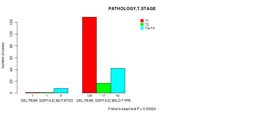 del_5p14.2 cnv correlated to 'PATHOLOGY.T.STAGE'.