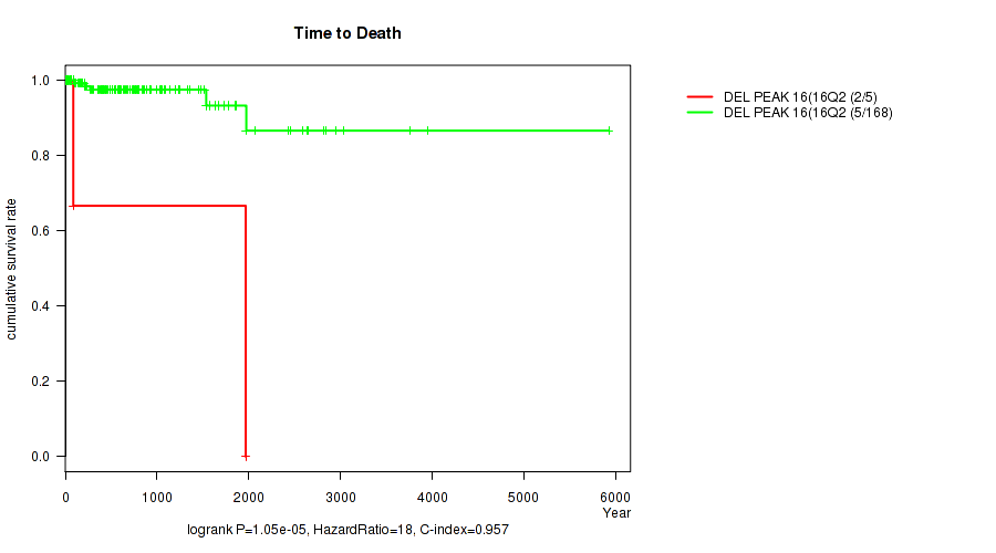 del_16q24.1 cnv correlated to 'Time to Death'.