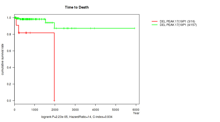 del_19q13.42 cnv correlated to 'Time to Death'.