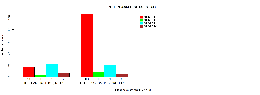 Figure S32. Get High-res Image Gene #27: 'del_22q12.2' versus Clinical Feature #3: 'NEOPLASM.DISEASESTAGE'