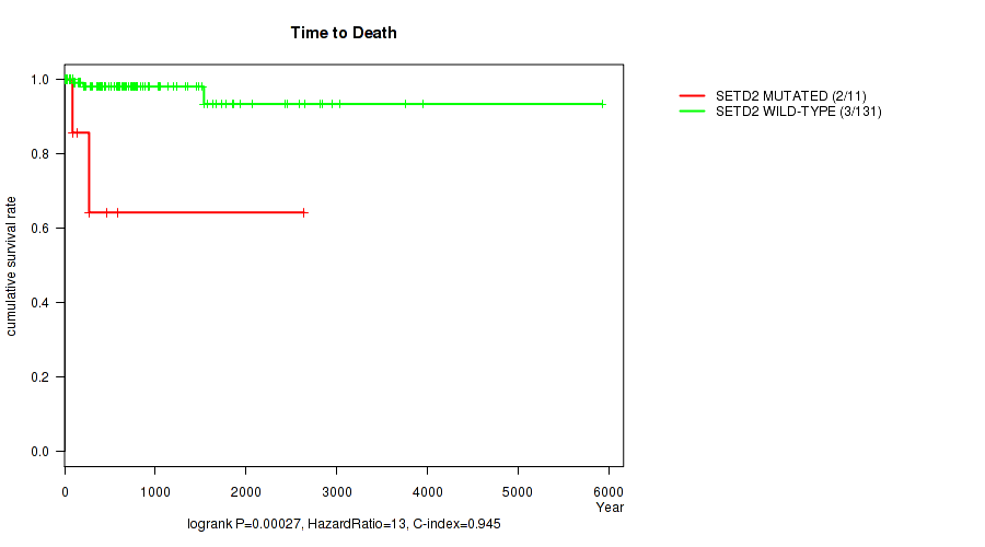 Table S1. Gene #8: 'SETD2 MUTATION STATUS' versus Clinical Feature #1: 'Time to Death'