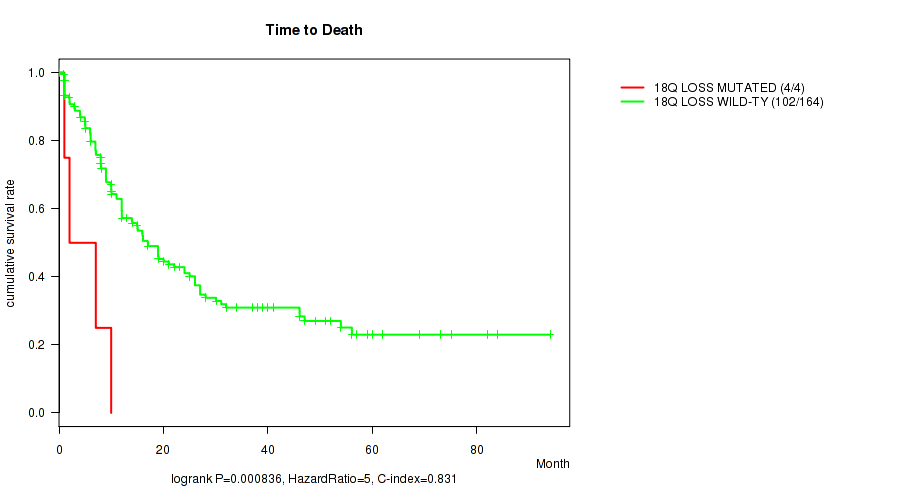 18q loss cnv correlated to 'Time to Death'.