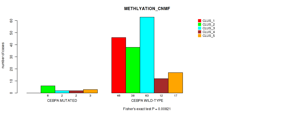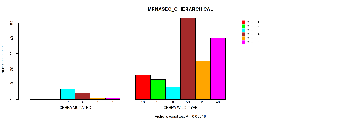 CEBPA mutation correlated to 'MRNASEQ_CHIERARCHICAL'.