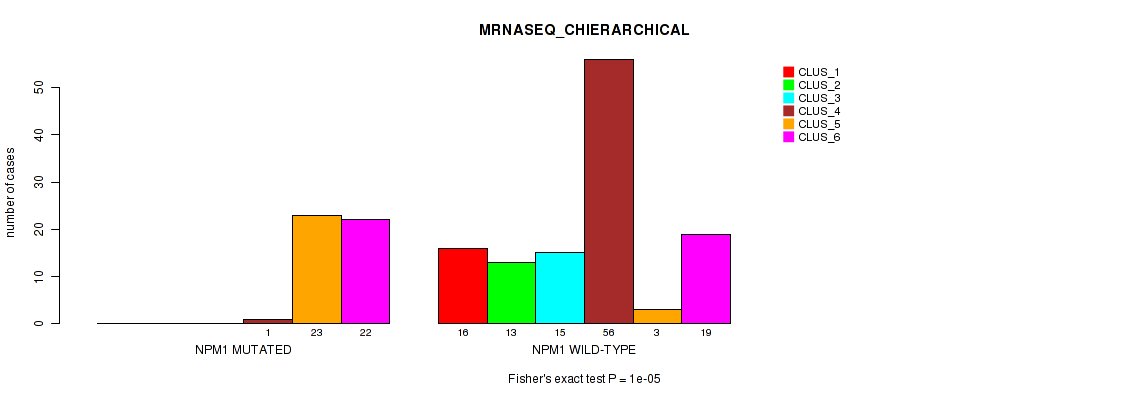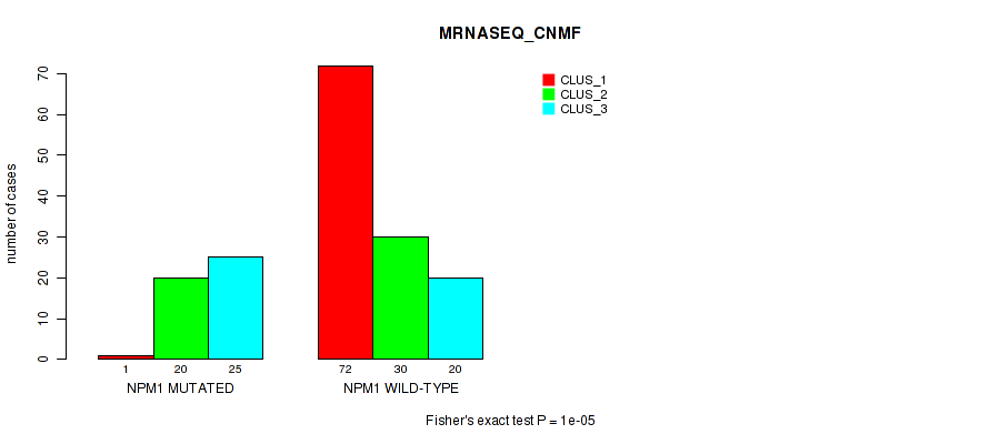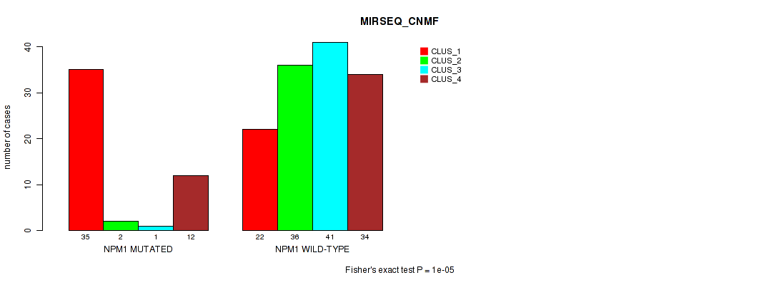 NPM1 mutation correlated to 'CN_CNMF', 'METHLYATION_CNMF', 'MRNASEQ_CNMF', 'MRNASEQ_CHIERARCHICAL', 'MIRSEQ_CNMF', and 'MIRSEQ_CHIERARCHICAL'.