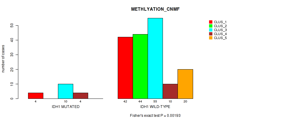 IDH1 mutation correlated to 'METHLYATION_CNMF'.