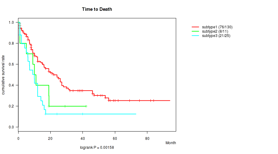 Figure S26. Get High-res Image Clustering Approach #6: 'MIRSEQ CHIERARCHICAL' versus Clinical Feature #1: 'Time to Death'