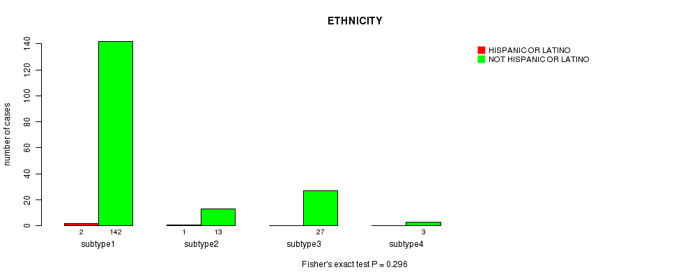 Figure S20. Get High-res Image Clustering Approach #4: 'RNAseq cHierClus subtypes' versus Clinical Feature #5: 'ETHNICITY'
