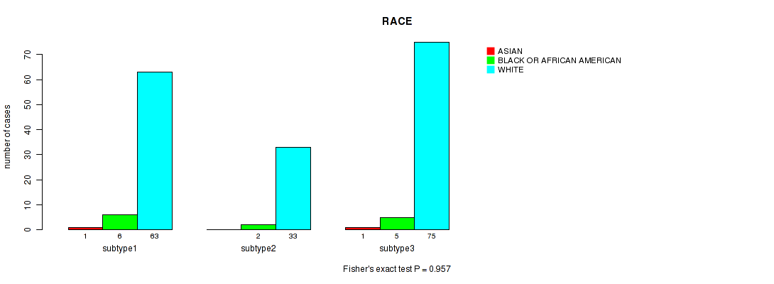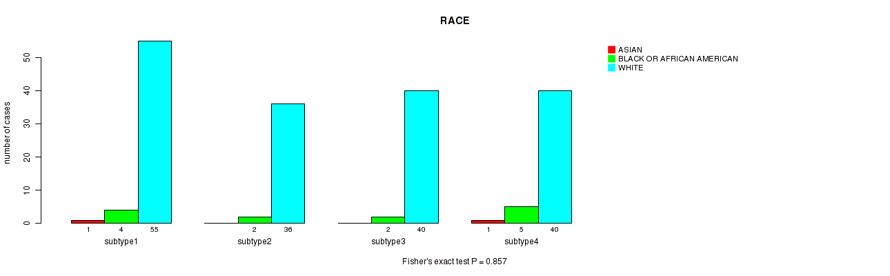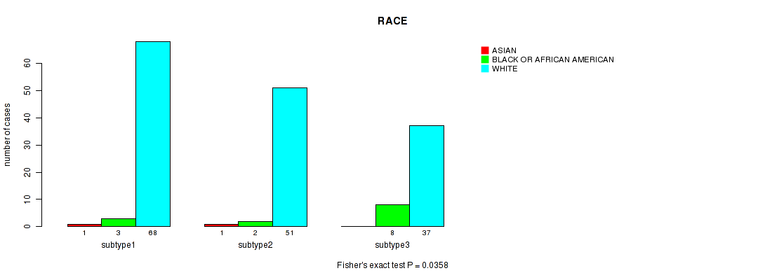 Figure S29. Get High-res Image Clustering Approach #6: 'MIRSEQ CHIERARCHICAL' versus Clinical Feature #4: 'RACE'