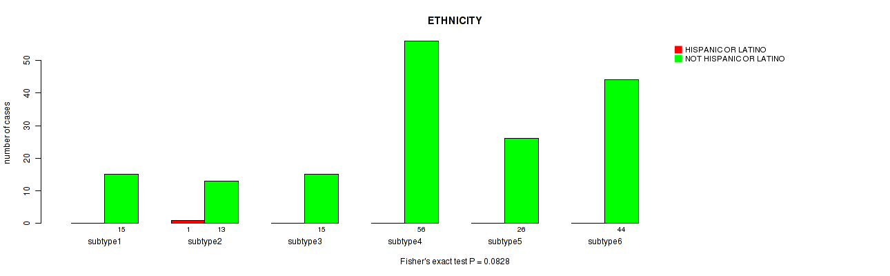 Figure S5. Get High-res Image Clustering Approach #1: 'Copy Number Ratio CNMF subtypes' versus Clinical Feature #5: 'ETHNICITY'
