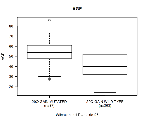 Figure S12. Get High-res Image Gene #36: '20q gain' versus Clinical Feature #2: 'AGE'