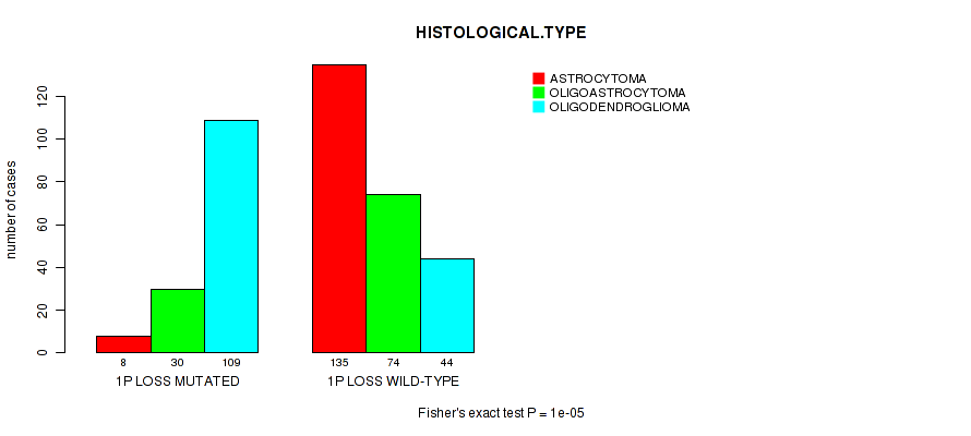 1p loss cnv correlated to 'HISTOLOGICAL.TYPE'.