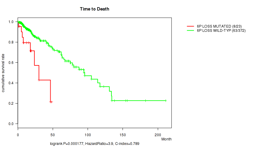 Figure S14. Get High-res Image Gene #50: '6p loss' versus Clinical Feature #1: 'Time to Death'