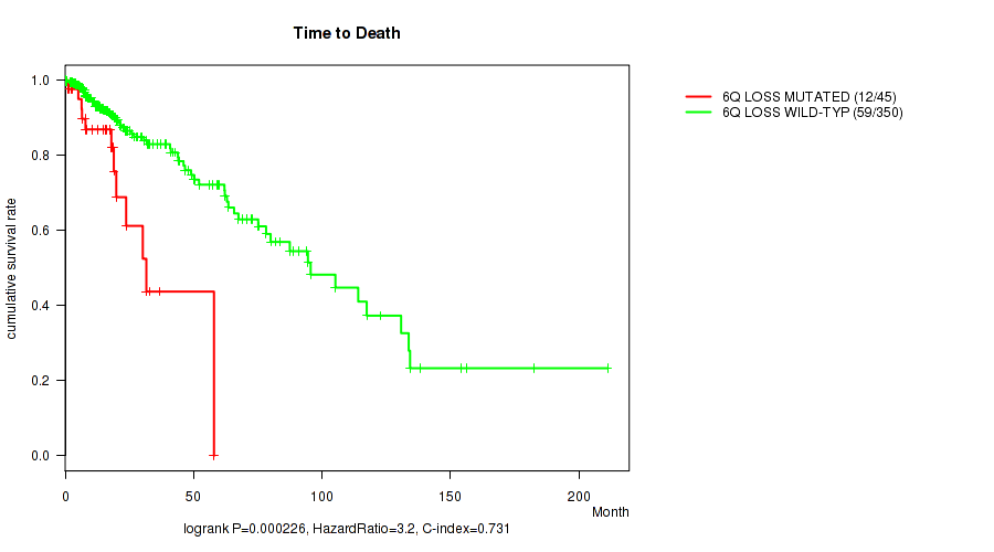 6q loss cnv correlated to 'Time to Death' and 'HISTOLOGICAL.TYPE'.