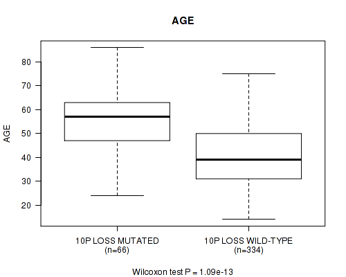 Figure S22. Get High-res Image Gene #59: '10q loss' versus Clinical Feature #2: 'AGE'