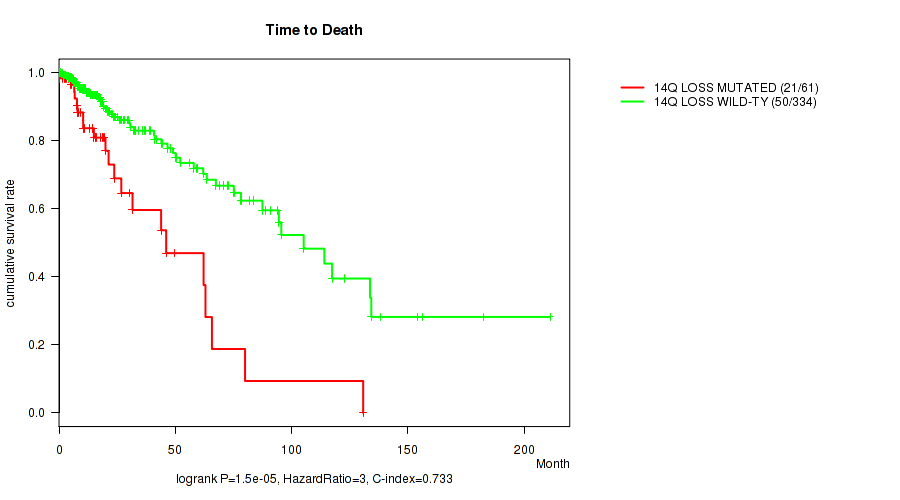 | 14Q LOSS MUTATED | 61 | 21 | 0.1 - 130.8 (15.0) |