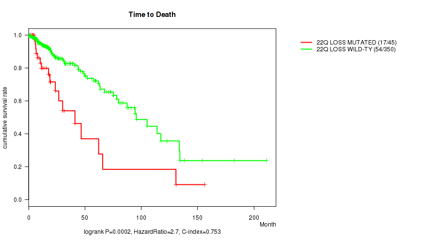 Figure S26. Get High-res Image Gene #77: '22q loss' versus Clinical Feature #1: 'Time to Death'