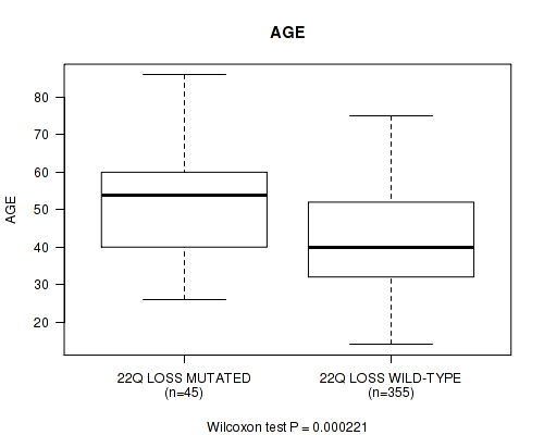 Figure S27. Get High-res Image Gene #77: '22q loss' versus Clinical Feature #2: 'AGE'
