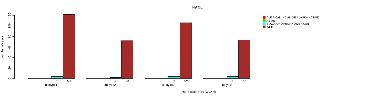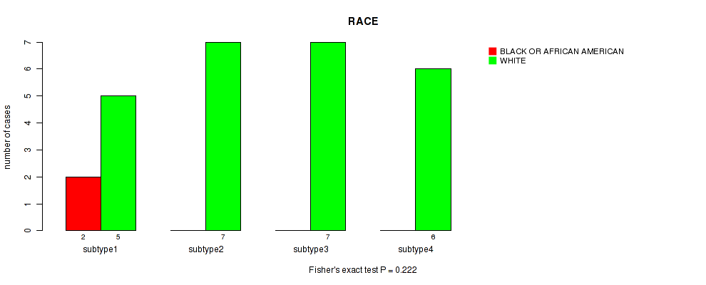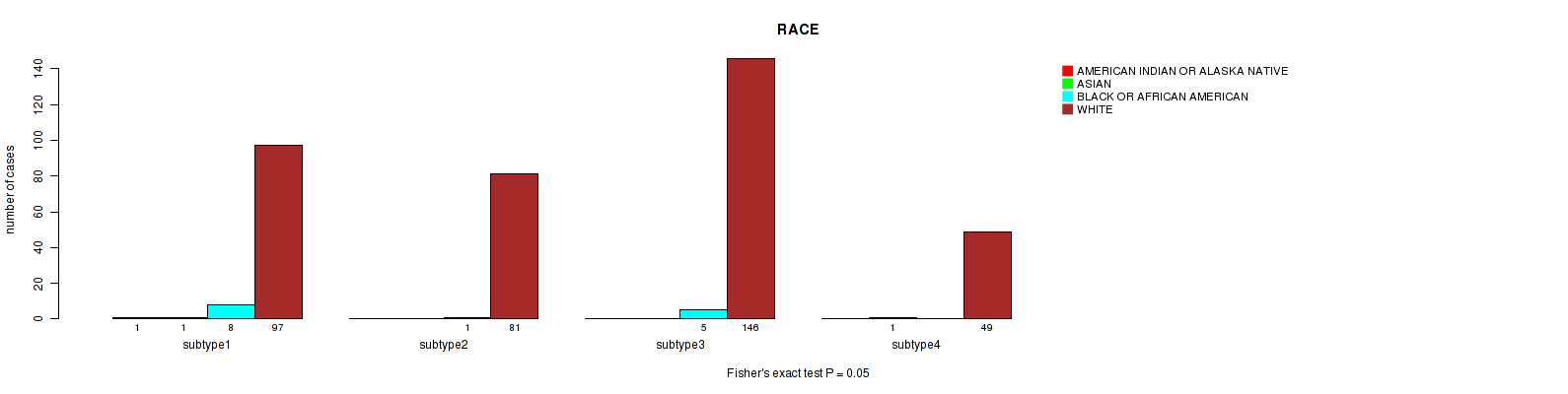 Table S98. Clustering Approach #11: 'MIRseq Mature CNMF subtypes' versus Clinical Feature #7: 'RACE'