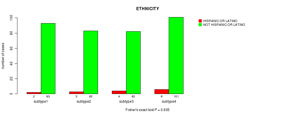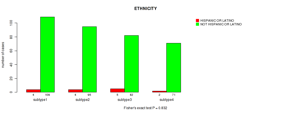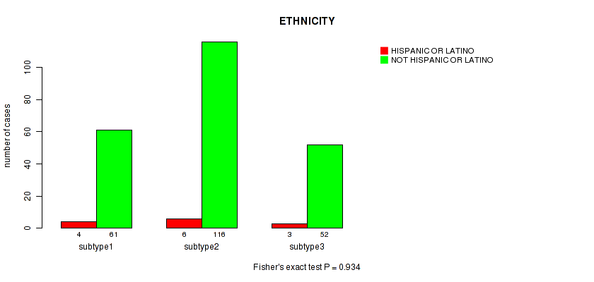 Figure S96. Get High-res Image Clustering Approach #12: 'MIRseq Mature cHierClus subtypes' versus Clinical Feature #8: 'ETHNICITY'