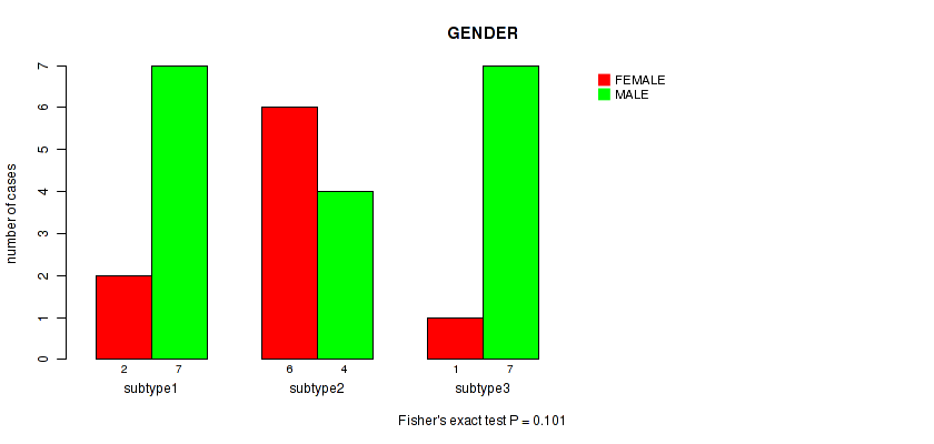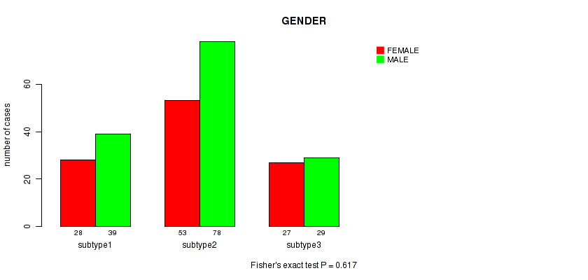 Figure S91. Get High-res Image Clustering Approach #12: 'MIRseq Mature cHierClus subtypes' versus Clinical Feature #3: 'GENDER'