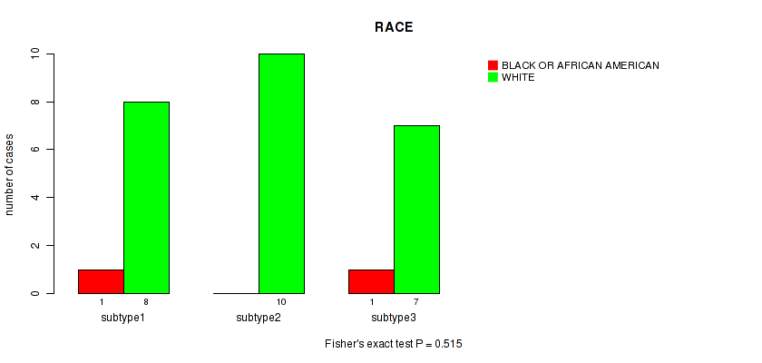 Figure S87. Get High-res Image Clustering Approach #11: 'MIRseq Mature CNMF subtypes' versus Clinical Feature #7: 'RACE'