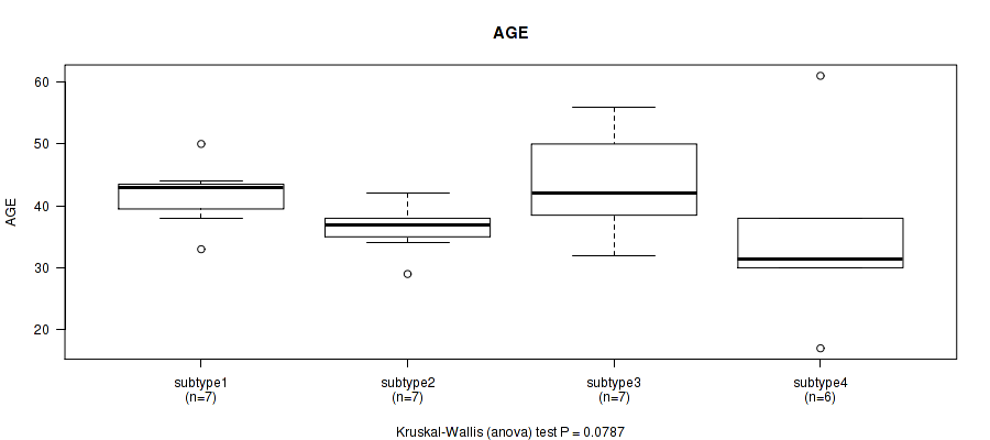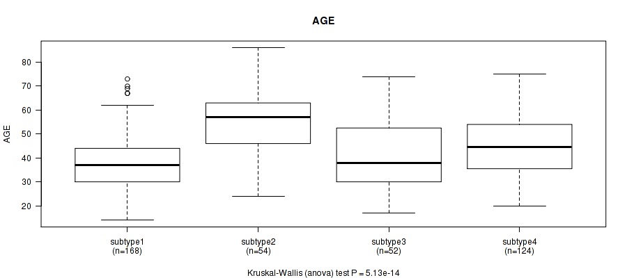 Figure S90. Get High-res Image Clustering Approach #12: 'MIRseq Mature cHierClus subtypes' versus Clinical Feature #2: 'AGE'