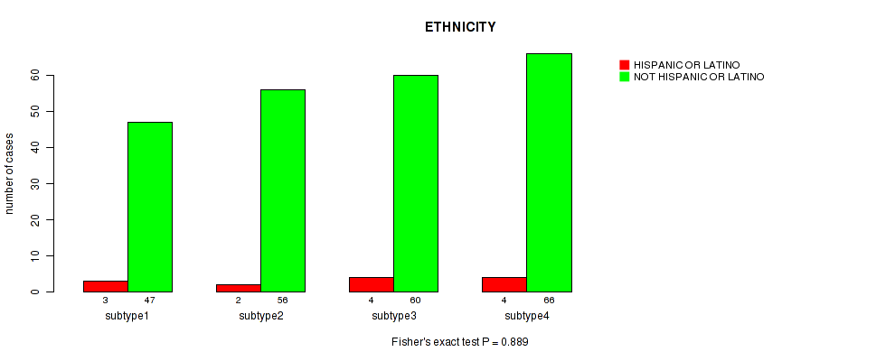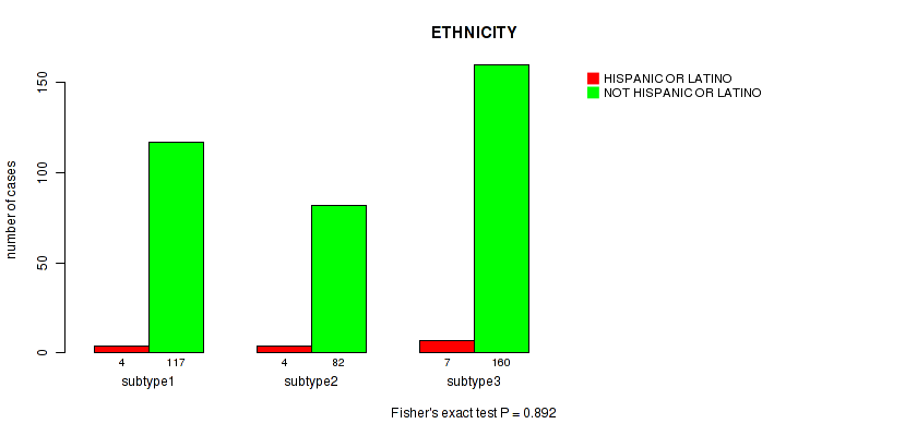Figure S88. Get High-res Image Clustering Approach #11: 'MIRseq Mature CNMF subtypes' versus Clinical Feature #8: 'ETHNICITY'