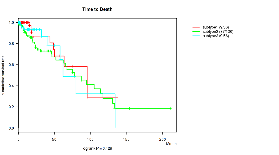 CNMF clustering analysis on array-based mRNA expression data identified 3 subtypes that do not correlate to any clinical features.