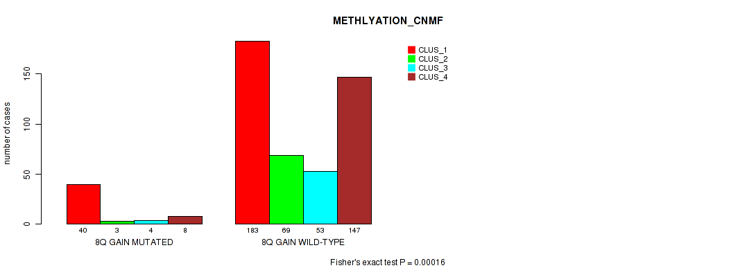 • 8q gain cnv correlated to 'CN_CNMF' and 'METHLYATION_CNMF'.
