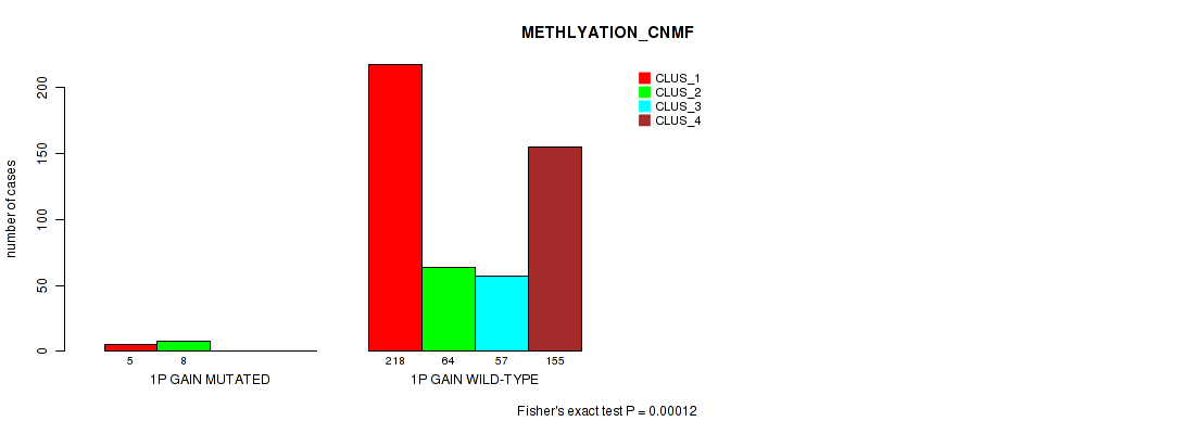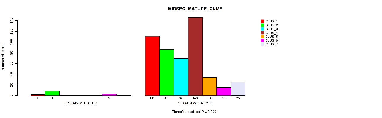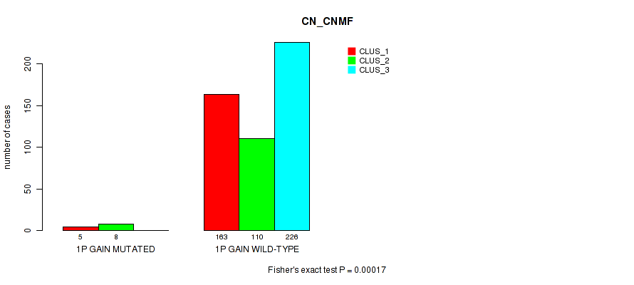 • 1p gain cnv correlated to 'CN_CNMF',  'METHLYATION_CNMF',  'MRNASEQ_CNMF',  'MRNASEQ_CHIERARCHICAL',  'MIRSEQ_CHIERARCHICAL',  'MIRSEQ_MATURE_CNMF', and 'MIRSEQ_MATURE_CHIERARCHICAL'.