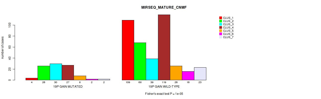 • 19p gain cnv correlated to 'CN_CNMF',  'METHLYATION_CNMF',  'MRNASEQ_CNMF',  'MRNASEQ_CHIERARCHICAL',  'MIRSEQ_MATURE_CNMF', and 'MIRSEQ_MATURE_CHIERARCHICAL'.