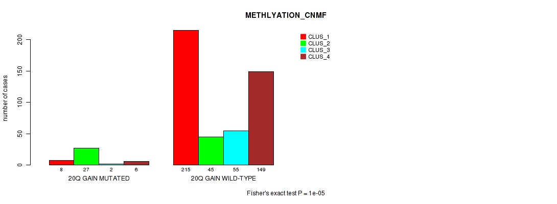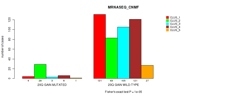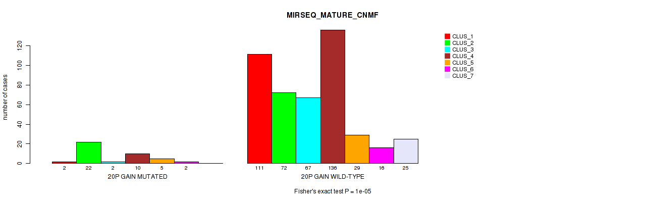• 20p gain cnv correlated to 'CN_CNMF',  'METHLYATION_CNMF',  'MRNASEQ_CNMF',  'MRNASEQ_CHIERARCHICAL',  'MIRSEQ_CHIERARCHICAL',  'MIRSEQ_MATURE_CNMF', and 'MIRSEQ_MATURE_CHIERARCHICAL'.