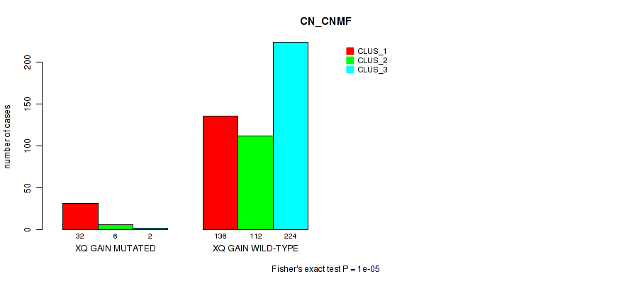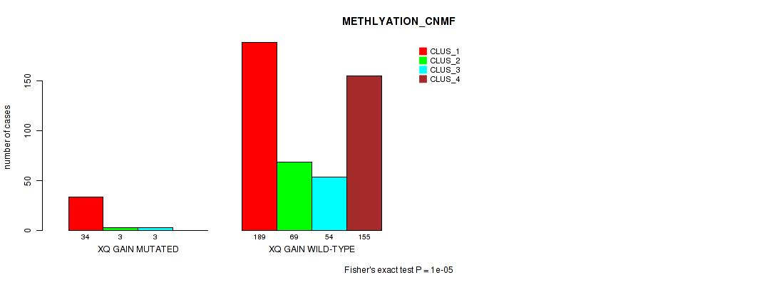 • xq gain cnv correlated to 'CN_CNMF',  'METHLYATION_CNMF',  'MRNASEQ_CNMF', and 'MRNASEQ_CHIERARCHICAL'.