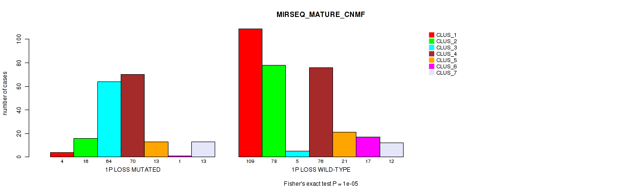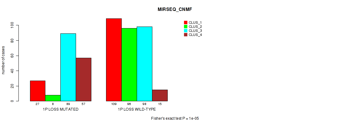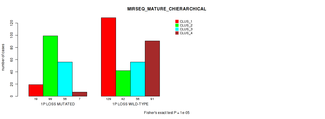 • 1p loss cnv correlated to 'MRNA_CHIERARCHICAL',  'CN_CNMF',  'METHLYATION_CNMF',  'RPPA_CNMF',  'MRNASEQ_CNMF',  'MRNASEQ_CHIERARCHICAL',  'MIRSEQ_CNMF',  'MIRSEQ_CHIERARCHICAL',  'MIRSEQ_MATURE_CNMF', and 'MIRSEQ_MATURE_CHIERARCHICAL'.