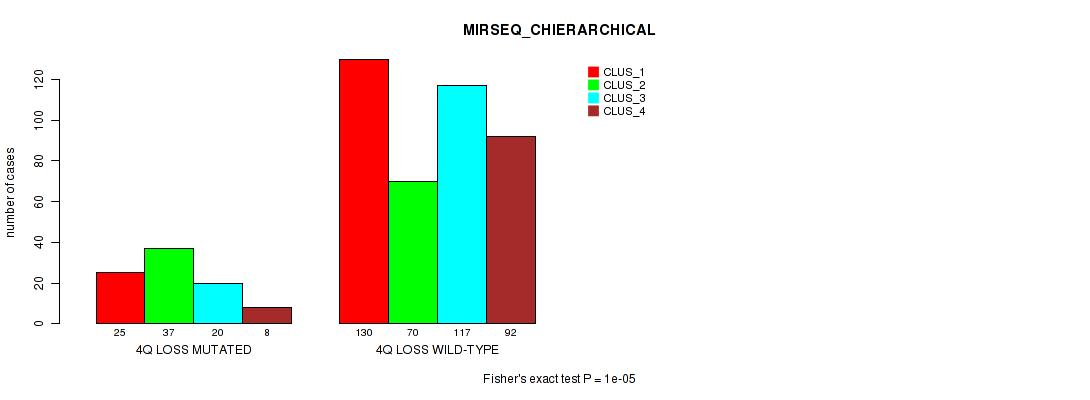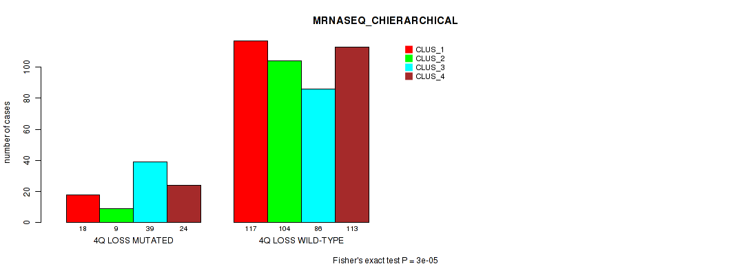 • 4q loss cnv correlated to 'METHLYATION_CNMF',  'MRNASEQ_CHIERARCHICAL',  'MIRSEQ_CNMF',  'MIRSEQ_CHIERARCHICAL', and 'MIRSEQ_MATURE_CHIERARCHICAL'.