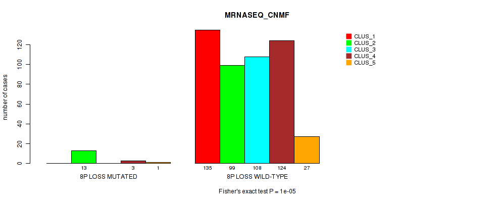 • 8p loss cnv correlated to 'CN_CNMF',  'METHLYATION_CNMF',  'MRNASEQ_CNMF',  'MRNASEQ_CHIERARCHICAL', and 'MIRSEQ_MATURE_CNMF'.