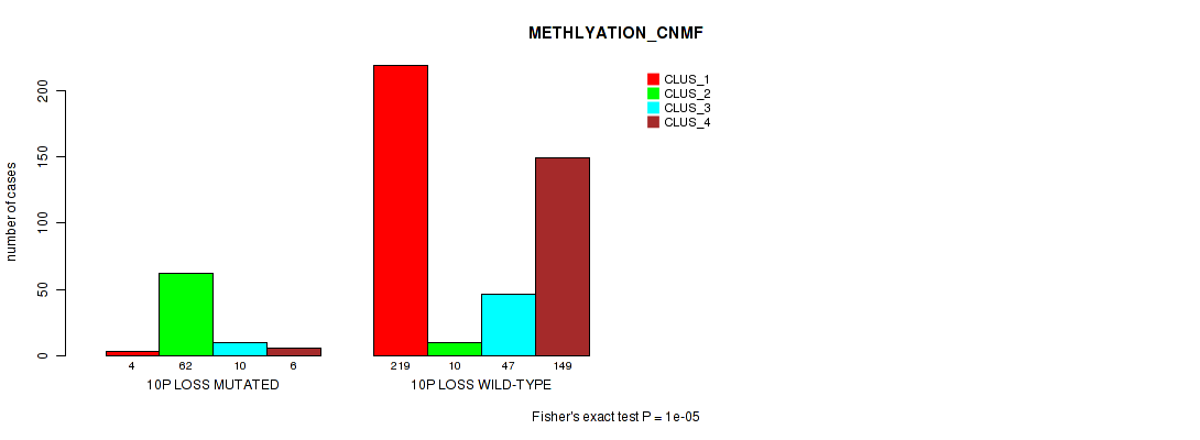 • 10p loss cnv correlated to 'CN_CNMF',  'METHLYATION_CNMF',  'RPPA_CNMF',  'MRNASEQ_CNMF',  'MRNASEQ_CHIERARCHICAL',  'MIRSEQ_CNMF',  'MIRSEQ_CHIERARCHICAL',  'MIRSEQ_MATURE_CNMF', and 'MIRSEQ_MATURE_CHIERARCHICAL'.