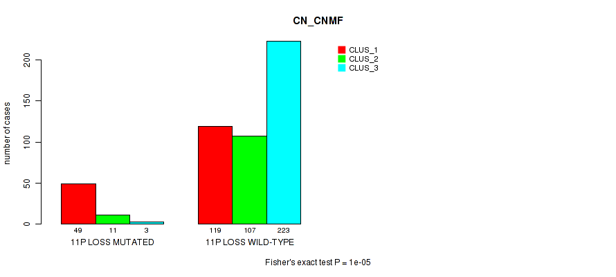 • 11p loss cnv correlated to 'CN_CNMF',  'METHLYATION_CNMF',  'MRNASEQ_CNMF',  'MRNASEQ_CHIERARCHICAL',  'MIRSEQ_CHIERARCHICAL', and 'MIRSEQ_MATURE_CHIERARCHICAL'.