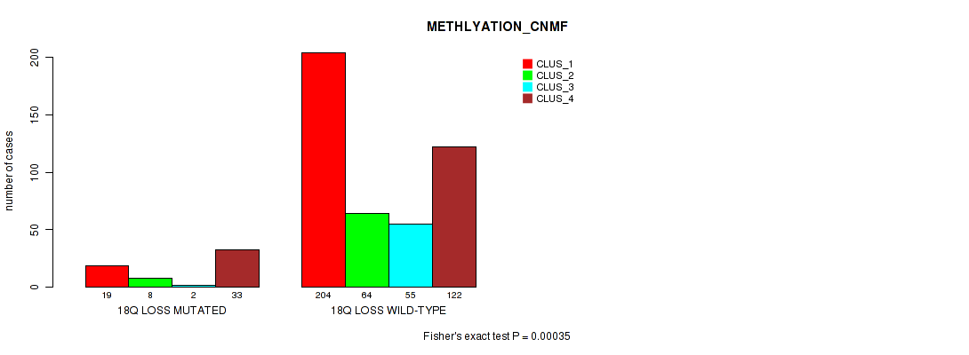 • 18q loss cnv correlated to 'METHLYATION_CNMF'.
