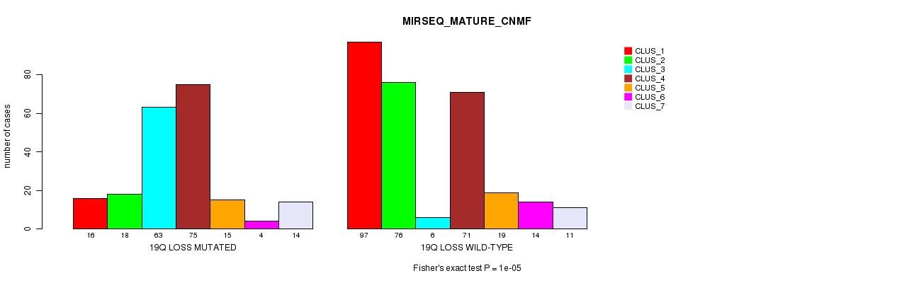 '19q loss' versus 'MIRSEQ_MATURE_CNMF'