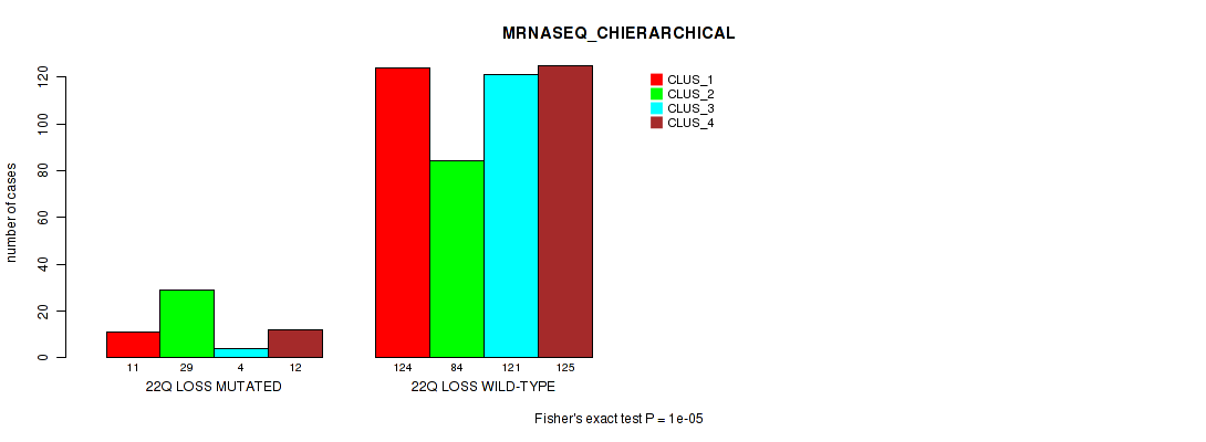 Figure S166.  Get High-res Image Gene #78: '22q loss' versus Molecular Subtype #8: 'MRNASEQ_CHIERARCHICAL'